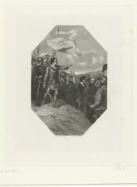 Curator: What strikes me immediately about this engraving is the raw energy despite its age. There’s something powerful in the gritty line work. Editor: That’s Jacob Ernst Marcus’s "Beleg van Alkmaar, 1573," created in 1821 and held here at the Rijksmuseum. It captures a pivotal moment of Dutch resilience. It's rendered with remarkable detail, isn’t it? All done with ink on paper, showcasing his mastery of the engraving technique. Curator: "Resilience" is such a formal way to put it; I think of defiant guts! That lone figure hacking away at the dike looks determined. And it's clever how the print makes that act of destruction almost heroic, central to the entire scene. The other invaders are so well armored it appears futile. Editor: Marcus’s commitment to realism emphasizes the narrative. Structurally, note how the artist uses line to direct our gaze from the destruction on the left, where we can note what appears to be flooding, across to the soldiers clambering up ladders on the right, each element reinforcing the tension. Consider the distribution of dark and light as symbolic weight in this composition. The clean, blank sections only highlight the scene of impending doom. Curator: It makes you wonder, doesn’t it? The act of creating it over two centuries later... does that distance heighten the drama? It's not just history; it’s a re-imagining, an almost mythological take, despite that devotion to "realism". I'm sure he felt inspired. That dark and light contrast serves as an emblem to emphasize the bravery and sacrifice made during those years. Editor: Precisely, the clean lines accentuate clarity and offer an intriguing glimpse into Dutch history through a nineteenth-century lens. It stands as an enduring example of line work and narrative form intertwined. I think the clarity enhances that central focus we discussed and offers it immediately to any viewer regardless of its age. Curator: Looking at it, I can feel those cold winds whipping off the North Sea, sense the panic. It just takes a great artist to evoke that, even through ink on paper. Editor: A compelling reminder of the power of printmaking, indeed, to transport us, beyond pure representation, to genuine understanding of the past.