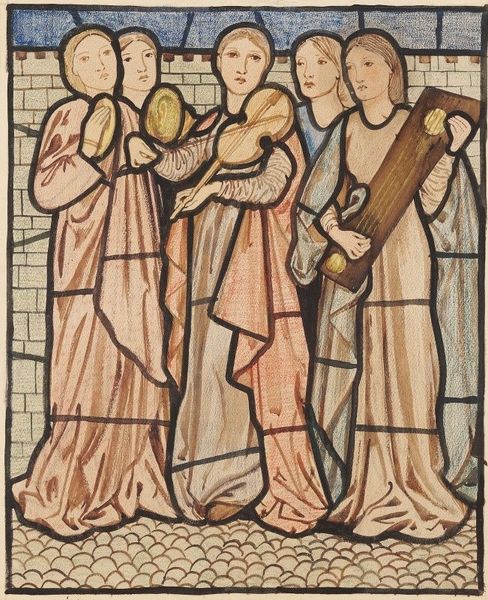 Editor: Here we have “Angels Playing Harps,” a drawing in ink on paper by Edward Burne-Jones. It gives me such a sense of otherworldly calm, like floating in a dream. What do you see in this piece, and how does it connect to the artistic and social currents of the Pre-Raphaelite movement? Curator: This drawing invites us to consider the complex dialogue between spirituality and representation. Burne-Jones, deeply embedded in the Pre-Raphaelite movement, challenged the rigid industrialization of Victorian England by looking to the art and ideals of the medieval period. Notice the androgynous features of the angels and their melancholic expressions. This deliberately challenges the traditional, often hyper-sexualized, depictions of women. How might the absence of overt gender markers influence the viewer’s interpretation? Editor: It’s interesting that you bring up gender, because I initially just saw angels. Now that you mention it, there’s a softening, almost an ambiguity to the figures, definitely a departure from typical portrayals. Curator: Precisely. This subversion is part of the Pre-Raphaelites’ broader challenge to societal norms. By idealizing a pre-industrial past and reimagining mythological figures, artists like Burne-Jones critiqued the materialism and social inequalities of their time. Considering that Burne-Jones’ circle had strong socialist leanings, how does the artwork speak to a rejection of Victorian commercial values? Editor: I guess by focusing on beauty and spirituality, it provides an escape, a kind of quiet resistance to the ugliness and harsh realities of industrial society. It makes me consider their art as a form of activism. Curator: Exactly! And by encouraging viewers to question established norms, they pave the way for evolving social attitudes regarding beauty, gender, and societal roles. Ultimately, Burne-Jones moves beyond aesthetics and uses allegory to express political convictions. Editor: It’s amazing how much is going on beneath the surface of such a seemingly tranquil image. I will never see those angel figures the same way. Curator: Absolutely, understanding context empowers us to decode visual languages and grasp art's potential as a catalyst for social progress.