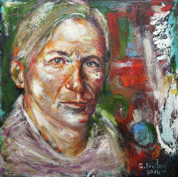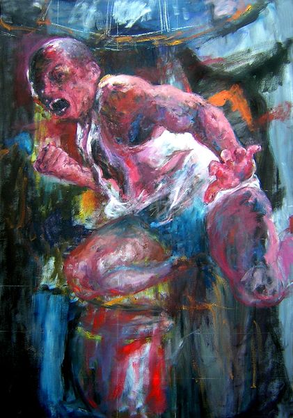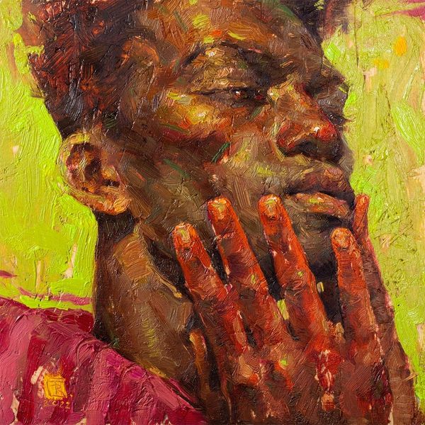 Carmen Delaco made "Fighter," with, what looks like, oil paint, and a limited palette. It’s a painting that embraces process; you can see the hand of the artist in every stroke. The material aspects are crucial here. Look at the texture, that redness laid on thick, and the physicality of the medium. It's not about hiding the work; it's about the energy of applying paint. There's this patch of raw red above the head, almost like a wound or a halo, depending on your mood. It’s visceral, and it makes you feel something, right? Delaco's got this rawness that reminds me of Soutine, that intensity of emotion and the willingness to let the paint do the talking. It’s not pretty, but it’s real. And in art, as in life, sometimes the real stuff is the most beautiful. There’s no one right way to see it, and that's the point.