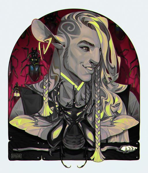 Fernanda Suarez created this digital illustration, "Hades 2," in the 20th Century. The composition is dominated by a central figure, his form sharply contrasted against a murky background populated by shadowy figures of hellhounds. Note how Suarez uses color—the vivid, almost electric blue of the hair clashes dramatically with the somber tones elsewhere, drawing our eye and unsettling our expectations. The gaze is direct, unwavering, and framed by severe lines, conveying a sense of power and authority. The stark realism is disrupted by symbolic elements—the skull necklace, the tattoos, the lighter—each a signifier that complicates the reading of this mythological figure. Suarez masterfully uses shadow and light to not only define form but to evoke a sense of foreboding. This interplay suggests a deeper exploration of themes such as mortality, control, and the shifting boundaries between the real and the symbolic. It is in these visual tensions that "Hades 2" truly resonates.
