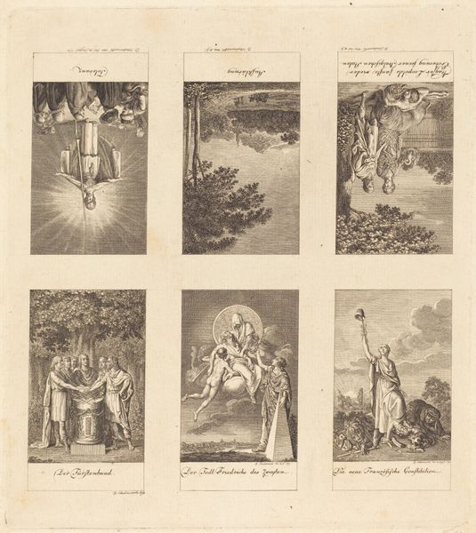 This print, "Alles behalve goede vrienden", was created by K. Braun and F. Schneider, and is part of the Rijksmuseum collection. It employs the graphic precision of engraving to weave together seemingly disparate scenes into a unified narrative. The composition is structured into distinct panels, each a vignette that contributes to the overall theme. The detailed linework and contrasting shades of black and white create a visually rich surface, drawing the eye across the scenes of whimsical narrative. Each panel operates as a sign, contributing to a larger semiotic structure that invites decoding. The piece destabilizes conventional notions of friendship by juxtaposing scenes of betrayal and deceit. The imagery prompts a re-evaluation of social contracts and moral expectations through a collection of tales. The formal quality of the print, with its dense, organized chaos, underscores the complex relationships it portrays, challenging the viewer to find meaning within its structure.