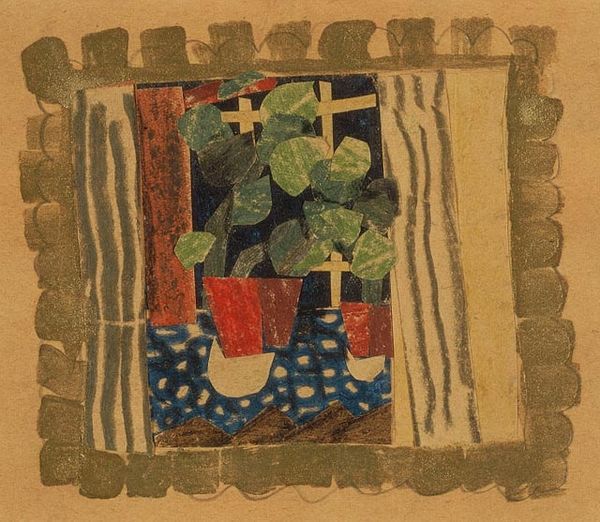 Editor: This piece, titled "Ablak," which means "Window" in Hungarian, is by Vajda Lajos. The artwork might include watercolor and possibly oil pastel on toned paper, maybe even paste-up techniques. I find its geometric composition quite intriguing, but I’m curious, what story do you think the materials and process tell in this work? Curator: Well, given Lajos’ historical context – grappling with the interwar period in Hungary – I am most intrigued by the choices inherent in his making of art. Toned paper as opposed to canvas? The selection of accessible media such as watercolors, and the possible inclusion of oil pastel implies something about the accessibility of artistic creation for Lajos. The 'Window' suggests the very physical act of seeing, perhaps pointing towards how the working class is seeing their lives. Editor: That's an interesting take! So, you're focusing on how Lajos's material choices democratize the artistic process itself? What do you make of the suggestion of the 'paste-up' aesthetic and how that reflects broader socioeconomic factors during that period? Curator: Precisely. Consider the paste-up. If it is one, that elevates everyday production means over high-art production. It suggests fragmentation, the piecing together of scraps, echoing potential scarcity and resourcefulness amidst social upheaval. What materials *didn't* he choose, and what would that signal to us? Editor: It makes you think about what the work IS by knowing what the work ISN'T... like the absence of luxurious or extravagant materials points us towards a whole new level of artistic intention. The materials are really speaking! Curator: Absolutely! The perceived “bleed” of watercolors further democratizes form and intentionality. I’m grateful to the close reading you’ve performed on materiality to bring this forward in our appreciation of Lajos's artistic agency, and the role of accessibility in a troubled historical period. Editor: Thanks! It really reframed my perspective, making me think about how the artwork IS, as a direct expression of, or a reflection of socio-economic conditions.
