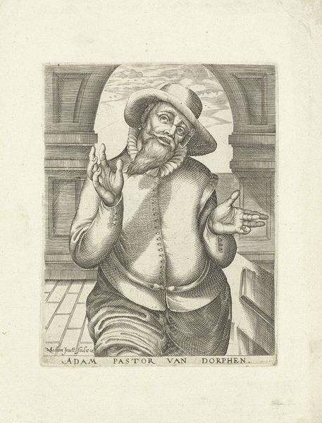 Christoffel van Sichem I created this print of Adam Pastor, now held at the Rijksmuseum. Observe Pastor’s hands; they are open and expressive, gesturing in a manner that’s both welcoming and indicative of discourse. This motif of open hands has roots stretching back to antiquity, a symbol of truth, honesty, and divine blessing. We see similar gestures in Roman oratory poses, and even further back in ancient religious iconography, signifying a conduit between the divine and mortal realms. The raised hand reappears through the ages, adopted by Christian preachers to emphasize the importance of their sermons. Consider the emotional weight of this pose. The open hands suggest vulnerability, an invitation to connect. It is a powerful tool for persuasion, tapping into our collective memory, where the act of giving and receiving is primordial. This deeply ingrained symbolism resonates, engaging viewers on a subconscious level and fostering a sense of trust and understanding.