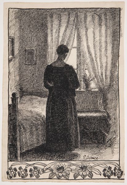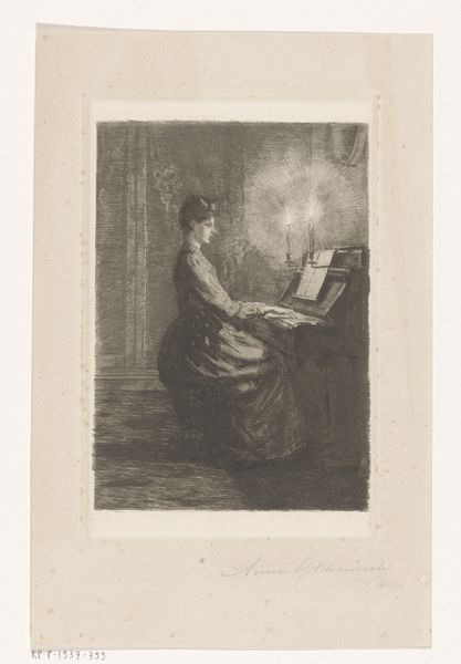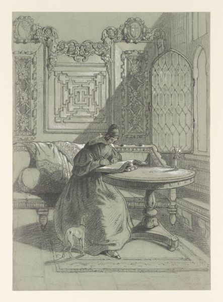 This image, "Man Standing by a Table with Papers," was made by Willem Steelink. It is a print, most likely an etching or engraving, judging by the fineness of the lines. Look closely, and you can see how the artist has built up tone with many tiny strokes, giving a sense of the textures and surfaces in the room. The figure's clothing, the tablecloth, and the papers all have a tactile quality. These are the products of skilled labor, like the man standing before us. Consider the social context of printmaking: it's a medium of reproduction and distribution, making images accessible to a wider audience. It invites us to reflect on the relationship between the individual, labor, and the circulation of knowledge and information. It prompts a consideration of value - what is precious, what is commonplace, and how do we tell the difference? The production of a print is an important lens through which we can understand the changing dynamics of society and work in Steelink's time.