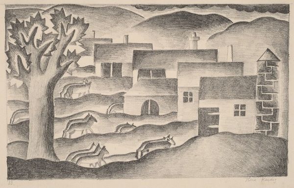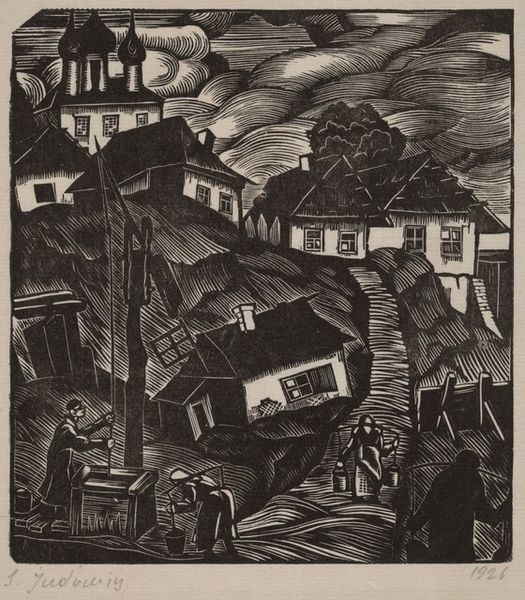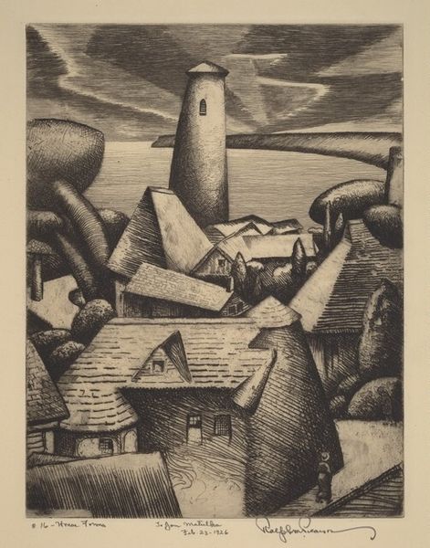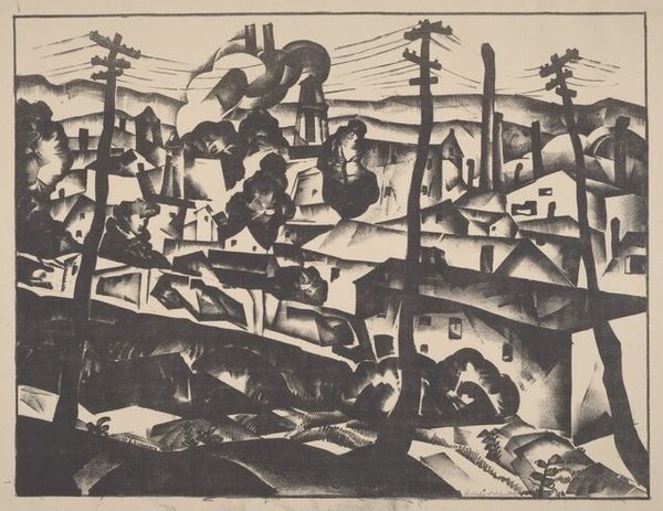 Editor: This is William J. Scott's "Untitled (Morning Delivery)," created in 1934 using charcoal and graphite. It gives me the sense of a small, hard-working, blue-collar community getting ready to start the day. What story do you see in this piece? Curator: It speaks to the powerful social realist movement taking hold at the time, right? The industrial subject matter, the depiction of labor... the aesthetic certainly points toward an interest in representing the working class, elevating them to the subject of fine art. Does it make you think about whose stories art institutions chose to showcase at the time? Editor: Absolutely. And considering it was made in 1934, during the Depression, it adds another layer, showing the struggles but also the resilience of these communities. The artist's focus on their daily grind emphasizes the dignity of hard work, even in times of economic hardship. Do you think it’s critical of the system or celebrating perseverance? Curator: Well, the absence of overt symbols of power is telling. The mine looms, but the figures are central, aren’t they? It is certainly focused on these individuals. Scott presents an environment defined by the necessities of industrial labor, framing the workers within it, for better or worse. The composition itself acts as a document and, perhaps, an endorsement of their struggles. Think about where this piece might have been displayed originally. Would it have been hung in corporate lobbies? Or would it likely have been in union halls or government-funded galleries created to support artists during the Depression? Editor: That is a really insightful point! It shifts my understanding to consider the intended audience and the socio-political context surrounding its display. I never thought of that, it is very helpful to consider. Curator: Right. The very act of representing these workers visually empowered them within the social discourse, didn’t it? Editor: Exactly, thanks for shining a light on the important connection between art and social history.