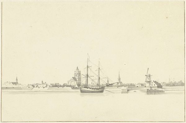 Editor: This print, simply titled *Deptford* by the British School, shows a harbor scene filled with ships. There's such a strong sense of place, but it also feels like a scene from a dream. What do you see in this work? Curator: The ships, heavily laden with symbolic weight, serve as potent reminders of trade, exploration, and perhaps, conquest. Notice how the artist positions the largest vessel, almost like a watchful guardian. What emotional response does this imagery evoke for you? Editor: I hadn't considered the darker undertones. It makes me think about the costs associated with maritime power. Curator: Exactly. The image carries a collective memory, a cultural imprint tied to Britain's naval history. It’s a powerful reminder that images are never neutral; they carry within them layers of meaning. Editor: It's amazing how much history can be packed into a simple harbor scene. Thanks for pointing that out.