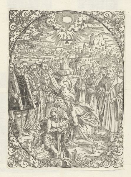 Curator: This print is entitled “Aanbidding der Koningen,” or “Adoration of the Kings.” Created around 1517, this piece employs ink, engraving and woodcut techniques to depict a traditional biblical scene by an anonymous artist during the Italian Renaissance. Editor: Oh, wow. My first impression? It feels both grand and incredibly intimate. There’s so much detail packed into this small space. Look at all those expressive faces—each seems to carry a story of its own. It's like a play is happening here. Curator: The adoration scene is laden with rich symbolism, representing not only faith, but also themes of power and acknowledgement. Notice the composition. The Virgin and Child form a visual anchor, halos emphasizing their divinity, while the kings, positioned respectfully around them, symbolize earthly acknowledgment of spiritual authority. Editor: Right, the kings' gifts...the composition reminds me how storytelling uses material objects to build spiritual ideas, the literal offerings representing an inward recognition of higher purpose. Does the Renaissance context give these figures some additional visual heft? They seem really individualized, far beyond the general symbol. Curator: Precisely! The Renaissance, with its humanist revival, often invested individual figures with character and emotional depth. Their expressions, clothing, even their postures reveal subtle aspects of character, contributing to a complex psychological landscape within the scene. You’re seeing both a religious observance, and a dawning humanism in that observation. Editor: And, wow, consider what it means for an anonymous artist. They poured meticulous detail, and a complex understanding of devotion, into creating these lines. I imagine they would find ways to include meaning only visible for those that shared in on certain symbolism that might have now become mostly lost on the majority of modern observers. Curator: True! It's interesting to consider what personal beliefs or artistic intentions drove an unknown person. Perhaps that adds another layer of veneration to our interpretation. Editor: So, as we look, we don’t just see a holy scene. It is an encounter that allows us to look closer to the cultural mindset that defined art as something between visual poetry, storytelling and deep personal expression. Curator: I would have to agree with that observation. This artwork transcends simple illustration to provide insights into Renaissance beliefs.
