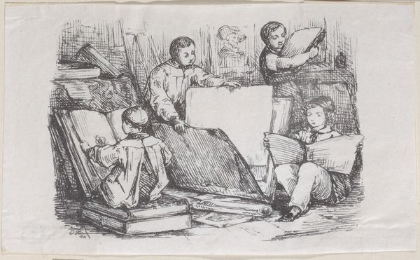 Aron from Kangeq created this woodcut print, "The Tale of Pogajuk," sometime before 1869, using a technique that was just then being introduced to Greenland by Europeans. If you look closely, you can see the marks left by the cutting tools, which give the image a raw, textured feel. This isn't just an aesthetic choice, it also reflects the realities of the artist's environment and the tools available to him. Woodcut is a relief printing process, requiring the artist to carve into a block of wood, removing the areas that will not be inked. It's a labor-intensive process, but also allows for multiple prints to be made from the same block. The image itself tells a story, likely one familiar to the local Inuit community. The figures are rendered with a directness and simplicity that speaks to the artist's focus on narrative. It is through these types of artworks that we see the fusion of indigenous storytelling with European printmaking techniques, offering valuable insight into the cultural exchanges that took place during this period, while also challenging the traditional boundaries of art history.