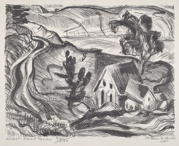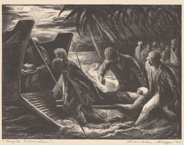 Editor: So, this is "Siesta, Montecassino," a graphite print by Prentiss Taylor from 1945. It's quite striking, this jumble of exhausted figures and suggestive symbolism. The mood feels heavy with loss and fatigue. What do you see in this piece? Curator: Well, this image speaks volumes about the cultural representation of war, particularly in the aftermath. Montecassino, a site of immense historical and religious significance, was virtually destroyed during World War II. Taylor uses that juxtaposition of devastation and former glory to comment on the human cost of conflict. Editor: I notice the crucified figure hanging upside down, contrasted with the soldiers trying to rest. Is there something specific Taylor might be suggesting there? Curator: Precisely. The inverted Christ is a potent symbol, evoking not only suffering, but also perhaps a world turned upside down by war. Think about the established narratives around war, the heroic portrayals... Taylor seems to be dismantling that. The sleeping soldiers, the vigilant guard, the ruins, they collectively portray the physical and emotional exhaustion that the heroic narrative often obscures. Editor: It makes me think about how art can challenge those dominant narratives. How do you think museums contribute to either reinforcing or challenging them? Curator: A crucial question! Museums can perpetuate heroic narratives through selective representation and specific curatorial choices, such as exhibition design, wall text, and programming. Conversely, they can showcase art like Taylor's to offer a more nuanced and critical perspective on historical events, encouraging viewers to consider marginalized experiences. Editor: It’s fascinating how much context shifts our perception. I initially saw only weariness, but now I recognize a deeper critique. Curator: Exactly, and that's the power of considering the artwork’s historical and social context, it unveils layers of meaning beyond the purely visual.