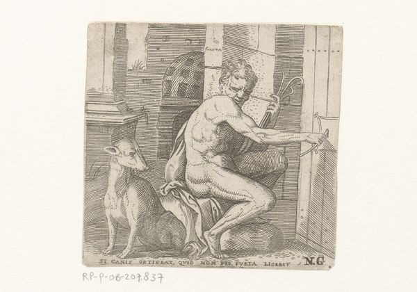 Editor: So this engraving, "Vrouwe Justitia," from the 16th century by an anonymous artist, it’s striking. It feels... less about ideal justice and more about raw power. The figure is so muscular and nude. What can you tell me about how the image’s material production contributes to its meaning? Curator: Well, think about the *labor* involved. Engraving like this requires immense skill, hours of meticulous work to create this precise image. The very act of reproduction, making multiple images accessible, changes the reception of the concept of justice. Was it designed for legal professionals? Political leaders? Everyday citizens? Editor: That’s a good point. And the nudity… does it have a connection to the availability and cultural meanings of prints at this time? Curator: Absolutely. The widespread distribution of such prints allowed for a visual engagement with concepts previously confined to elite circles. Justice, now, could be contemplated, debated, even criticized in new ways, using and fueled by this method of reproduction. The artist may have sought to create an iconic representation but ended up creating something that entered the sphere of commercial exchange. Do you see how materiality is shaping the way we experience and discuss these ideals? Editor: I think so. It’s less about the intended message and more about the artwork’s life as a material object circulating in society and what power structures that supports. I suppose I had never considered those things before. Curator: Exactly. Seeing how art comes into being and moves through society shifts our focus from solely aesthetics to include broader implications of production and use.