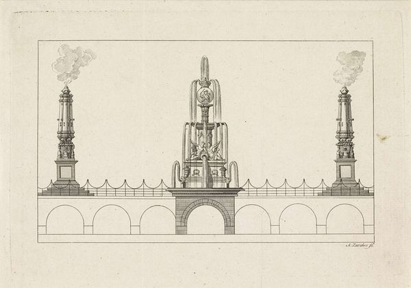 Curator: So, here we are, gazing upon Augustin Foin's "Twee tombes," created in 1771. The Rijksmuseum holds this print, an engraving that seems almost architectural in its precision. Editor: It really does! What struck me immediately is the somber stillness, the rigid geometry of these imagined tombs. It’s all so…orderly, but also quite cold. What do you see in it? Curator: Cold is a great word for it, isn’t it? Like stepping into a perfectly curated memory. I see the Enlightenment's obsession with order and reason trying to grapple with the messiness of death. The pyramids, the classical figures...it’s all about imposing a sense of control, almost willing immortality into existence through sheer force of artistic will. Don't you think? Editor: I suppose, but doesn't the very act of creating a tomb acknowledge mortality? Isn’t there a contradiction? Curator: Precisely! And isn't that where the beauty lies? It's a dance between what we *know* and what we *wish* to be true. The tiny figures milling about the bases of these monumental structures… they’re us, right? Lost in the shadows of these grand gestures. What do you think the artist might be intimating? Editor: That we are all quite small when faced with legacy? Perhaps these imposing structures would fade like memories as the future rushes by. Curator: Indeed! So it seems we're both finding something very human within all this calculated perfection, don't we? A tiny flicker of doubt. Editor: Absolutely. It's much more poignant now that I've considered it, beyond just "cold." Curator: Exactly! Foin is prompting us to consider something deeper: How do we remember? And what do we hope will survive us?