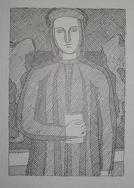 Hryhorii Havrylenko made this pen and ink drawing of Dante Alighieri at some point during his career. The lines feel intuitive, like Havrylenko is thinking through the drawing. Look at the cross-hatching that creates the shadows and the drapery of the clothes, how they suggest volume without closing in on themselves. Then there are the lines that make up the stripes on his tunic which vibrate like a Bridget Riley op-art painting! I find myself trying to follow a single line, but it just loops back in on itself, kind of like Dante's own journey through hell. The ink creates a stark contrast and bold presence and reminds me a bit of the work of Alfred Kubin. Both artists use a limited tonal range to create dynamic compositions, but where Kubin delves into nightmarish visions, Havrylenko seems to have a softer and more humanist take on the world.