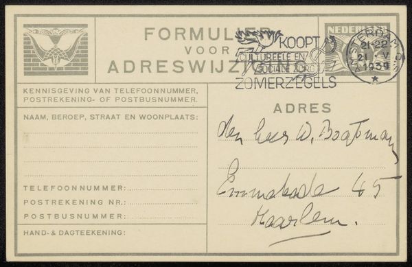 This receipt, printed by the Centrale Dienst voor de Levensmiddelenvoorziening in Amsterdam on March 16, 1943, is made from paper, a cheap and commonplace material. The processes involved in its making—typesetting, printing, handwriting—are similarly workaday. Yet, this innocuous piece of paper speaks volumes about the social context of its production. "Levensmiddelenvoorziening" translates to "food supply," and this document relates to a deposit for "aardappelhandelaren" or "potato traders." It was issued during the Nazi occupation of the Netherlands, a time of severe food shortages and rationing. This receipt shows a deposit of 300 guilders. The document is a stark reminder of how even the most basic needs—food, and the means to obtain it—become deeply politicized in times of conflict. This simple artifact offers a glimpse into the daily struggles of people living under occupation, and how something as ordinary as a potato could become a precious commodity, subject to state control. It challenges us to consider the social and political dimensions embedded in even the most mundane objects.