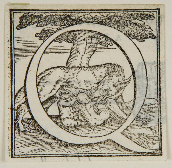 Editor: So this is Hans Holbein the Younger's "Letter Q," and it's part of a whole alphabet series. The medium looks like woodcut. It's so tiny and intricate. What strikes you about it? Curator: The means of production are key here. The labor involved in such a detailed woodcut, especially at this scale, speaks to the changing relationship between art, craft, and industry in the 16th century. Who was consuming these prints and how were they being used? Editor: I see your point. So, the 'Q' wasn't just art, it was part of a larger system of...literacy and commerce? Curator: Exactly! Consider the social context: the rise of printing, increased literacy, and the demand for decorative elements. It highlights how artistic skill was being utilized and commodified. What does that say about "high" art? Editor: Wow, I hadn't thought of it that way. It really does blur the lines between art and utility. Curator: Indeed, the material and its use challenge those traditional boundaries.