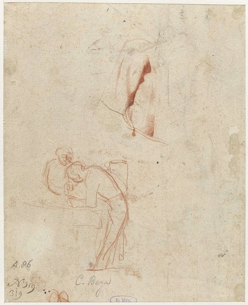 Editor: This sketch, "Figures in Profile" by Washington Allston, shows several figures in various poses and states of dress. It feels like a study sheet. What catches your eye about the imagery here? Curator: I see a fascination with classical forms and drapery, invoking a sense of timelessness. The figures, though lightly sketched, carry a symbolic weight. Do you notice how the profile heads seem almost like Roman busts? They evoke ideas of leadership and history. Editor: Yes, I see that now. It's interesting how these figures, even as sketches, seem to reference a grander narrative. Curator: Indeed. Allston uses these familiar images to explore themes of memory and cultural inheritance. Consider how the flying figures on the verso might represent aspiration, a reaching for the ideal. Editor: This makes me think differently about sketches. It's more than just practice; it's a visual language. Curator: Precisely. Allston's sketches reveal a dialogue between the artist and the enduring power of images.