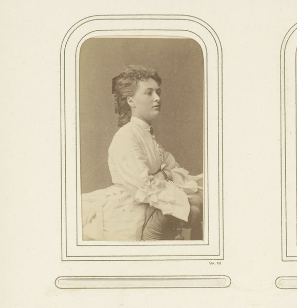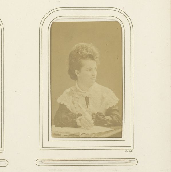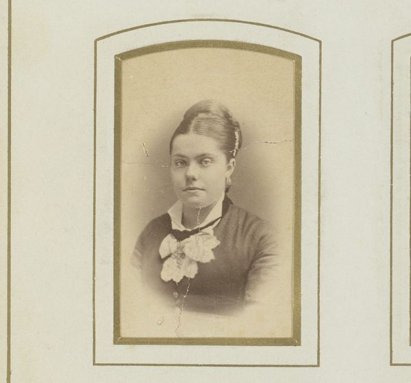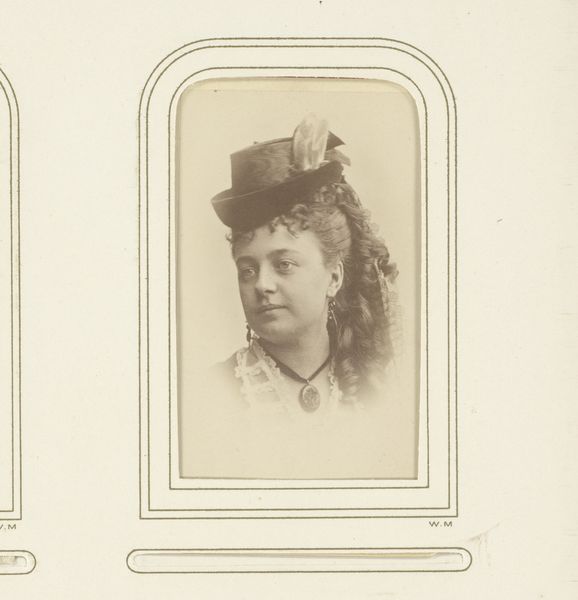 Waldemar Dahllöf created this photographic ‘Portret van Gurli Åberg’ using an albumen print. The sepia tone lends a classic, timeless quality to the image, emphasizing form and texture over vibrant color. Notice how the rounded rectangle of the frame contrasts with the subject's sharp profile. Dahllöf directs our gaze to the delicate balance between light and shadow that defines Åberg's face. The composition draws attention to the ornament suspended from a velvet ribbon around her neck. Considering semiotics, the portrait is rich with cultural codes. Åberg's hairstyle and dress communicate aspects of her social identity. But Dahllöf is not merely documenting; he is constructing an image that engages with contemporary ideas of beauty and representation. The portrait invites ongoing interpretation beyond its immediate historical context, reflecting how visual art continually evolves in meaning.