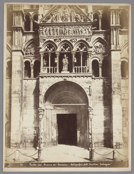 František Fridrich produced this albumen print of the Old Town Hall in Prague sometime in the late 19th century. It captures not just a building but a moment in the city's institutional history. The gothic windows and the crest above the entrance speak to Prague’s rich past as a center of trade and culture. More telling is the inscription above the arches which advertises fire insurance in both Czech and German. Here, on display, is the commercial life of the city and its ties to the Austro-Hungarian Empire. At the base of the building, a group of armed men are seated. Are they police? Soldiers? Their presence suggests the imposition of law and order in a place where insurance is openly marketed. To understand this photograph fully, one would need to delve into the archives of Prague’s municipal history and the records of its insurance companies. Only through careful research can we unlock the layers of meaning embedded in this seemingly simple image.