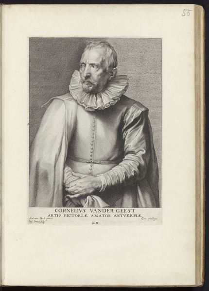 Curator: Looking at this sketch, I’m struck by its delicacy, its sheer… understatement. The sitter appears both grounded and ethereal, doesn't he? Editor: Indeed. I’m drawn to the texture, or lack thereof, in some areas. Notice how the drapery seems to vanish into the toned paper. Let’s tell our listeners that this is "Portret van Paul van Halmale," a pencil drawing likely created between 1630 and 1646 by Pieter de Jode the Younger. It resides here at the Rijksmuseum. Curator: Thank you. De Jode has captured something essential here. This is a portrait not just of a man, but of a station, an era. Look at that ruff. The light pencil work feels as if it traces a cultural memory. Halmale seems to be both contained by and emanating from his societal role. Editor: It's intriguing how the "nobility" is conveyed, mainly with this ruff you mention. The repetitive, painstaking creation of that lace symbolizes labor itself and speaks to a whole industry around fashioning status in this era. It is the age of conspicuous consumption. Curator: And think of what the ruff *meant*. Piety, certainly. Status, as you suggest. Restraint. Almost an enforced modesty… though its impracticality screams privilege, of course. These symbols are heavy. Editor: How was the paper prepared, and by whom? How was the graphite sourced, traded, prepared for drawing? These drawings circulated – sometimes as reproductive prints—becoming essential material for building and disseminating particular kinds of image and eventually, ideology. The web is larger than the final work suggests. Curator: Exactly! The image is not isolated; the hand has a voice too! This isn't simply an individual depicted, it is an interaction of symbol and surface. I love thinking about how layered a single pencil stroke can be, not merely in execution but in its resonating impact, through the artist's hand but also across time. Editor: Absolutely, there is plenty to consider about the physical presence and making of this powerful artwork. Curator: Well, the past certainly comes alive when contemplating these symbolic layers. Editor: And that reflection on how past artistic choices were dependent on materials makes art history truly come alive!