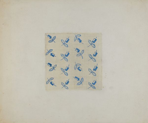 Curator: Here we have Nicholas Acampora's "Wall Paper," created in 1936, a watercolor and pencil drawing on paper. What do you make of it? Editor: Immediately, I notice the serenity of the pale blue and the delicate repetition. The botanical forms remind me of pressed flowers or perhaps even ferns preserved under glass. There's something inherently gentle about the overall design. Curator: It's a deceptively simple work. We need to consider the social and aesthetic context of the 1930s. Wallpaper, in that era, played a significant role in shaping domestic environments and conveying aspirations. Design had become democratized, and pattern-making, which had been elevated through the arts and crafts movement, became a potent language to express social identity through home design. Editor: From a formal perspective, the evenly spaced distribution of the golden foliage against the watery blue field generates a subtle, rhythmic pattern. The considered negative space amplifies the design, allowing the viewer's eye to calmly navigate the visual plane and thus engage deeply with color, texture and structure. Curator: Consider the aspiration embedded in decorative art. Even simple repeating forms evoke nature, inviting tranquility and even a suggestion of bucolic ideals into the urban, Depression-era home. In this era mass production was reshaping cultural habits so wallpaper samples also allowed the patron to dream beyond constraints of austerity, offering the prospect of attainable beauty. Editor: You are so right. Acampora allows just enough irregularity within each botanical depiction to disrupt any sense of cold perfection; and this lends the watercolor both immediacy and a welcoming disposition, something very delicate is happening between order and irregularity in pattern-making. Curator: What this work encapsulates is an interesting moment when consumer culture and the intimacy of domestic space collided. This piece acts as a microcosm for larger aspirations during this challenging socio-political moment. Editor: It’s fascinating how much emotional weight can be held within something seemingly so modest, like a design for wallpaper. Curator: Absolutely. Art's value lies not only in its aesthetic appeal but also its cultural resonance and historic weight. Editor: And here we can really see how form and content merge.