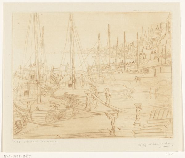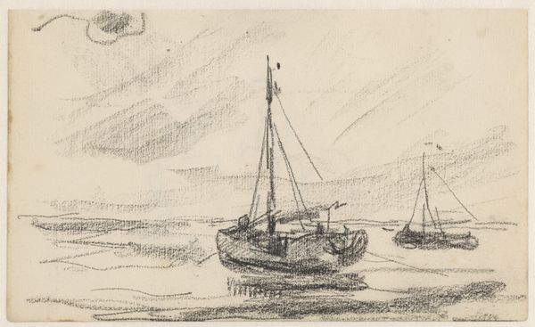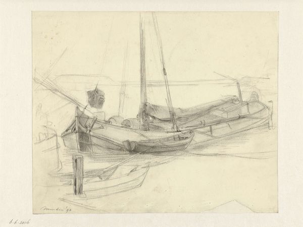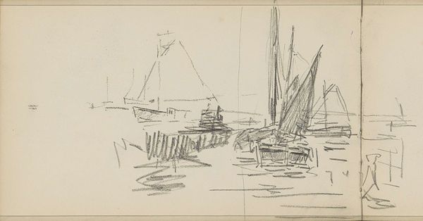 Charles Meryon created this drawing of boats on a river with masts sometime in the mid-19th century. It's a simple sketch, but it offers insight into France's evolving relationship with its waterways during that era. In the 1800s, French society was experiencing the full effects of the Industrial Revolution. Rivers were essential for transporting goods and materials, so they became a symbol of economic progress and national pride. But they also came to represent the tension between the idyllic, rural past and the rapidly changing urban landscape. Meryon captures this complexity by portraying working boats against a somewhat hazy backdrop. His choice of subject and style prompts questions about France's shifting identity and the legacy of industrialization. To explore these themes further, research into 19th-century French economic history, urban development, and the art world could provide a deeper understanding of the artwork.