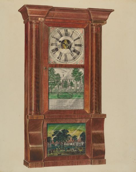 This is Richard Taylor’s ‘Wall Clock with Mantel’, made with watercolor and graphite. I like to think about the decisions that went into making this, the layers and the order of things. It’s easy to forget artmaking is a process, a series of steps and actions, not just an image that appears fully formed. Looking closely at the woodgrain, you see the artist's hand in the way the watercolor is applied, almost like he's caressing the surface, bringing out the texture. It's a bit wonky, but that's what makes it charming. Then there's the clock face itself, this hazy, dreamlike depiction of time. It's not just about telling time, it's about feeling time, seeing time through a filter of memory and imagination. That soft-focus landscape reminds me of Corot, that feeling of light and atmosphere, of capturing a fleeting moment. The whole piece has this lovely, handmade quality that reminds me of folk art, but with a touch of sophistication. It’s like a conversation between different ways of seeing, thinking, and feeling.