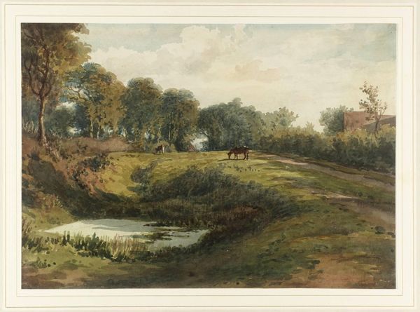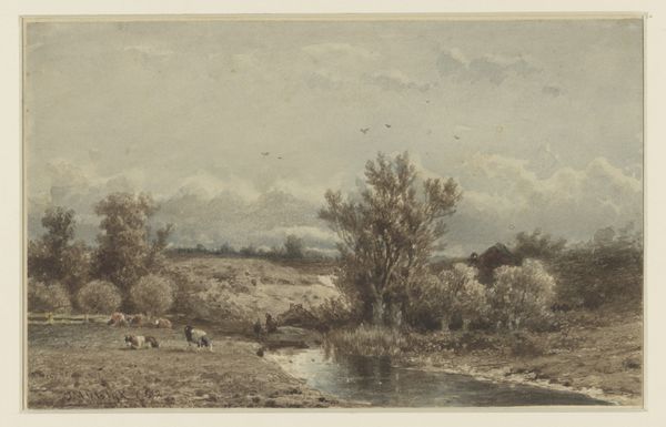 Willem Roelofs made this watercolor, "Weiland met koeien," depicting a serene pasture with cows. Roelofs was part of the Hague School, a group of Dutch artists in the late 19th century who sought to capture the everyday life and landscapes of the Netherlands. This painting reflects the cultural emphasis on agrarian life, but it also subtly presents complex social dynamics. Consider the role of women in agricultural settings at the time. Their labor, often invisible, was essential to the rural economy. While not directly represented, this absence prompts us to consider the unseen contributions of women in shaping the landscape. Roelofs’s work invites contemplation on the intersection of land, labor, and identity. It resonates with a quiet sense of the everyday, urging us to reflect on the stories embedded within seemingly simple scenes.