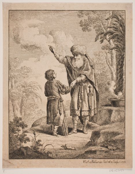 Editor: Here we see "The Chimney-Sweep" by Jacques Dumont. It's a print, and the figures are really striking. The textures in their clothing are quite detailed. What story do you think this image is trying to tell? Curator: Dumont presents us with a raw depiction of labor and childhood in the 18th century. Consider the social dynamics at play: the child's labor supporting the family unit, the mother's burden, perhaps the absence of the father. The print itself is an act of social commentary, made accessible through its medium. Who was this print intended for? Editor: So it's bringing awareness of societal issues to a wider audience. I hadn’t considered the print's accessibility. Curator: Precisely. The distribution of prints like these contributed to a growing public consciousness and dialogue around social inequalities of the era. Editor: That's a new way to view this piece and others like it. I'll consider this social commentary more deeply moving forward.