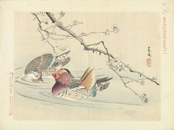 Matsumura Keibun created this print, "Two Birds Flying by Blue Bindweed," in the 19th century. Keibun, who lived during the Edo and early Meiji periods, was deeply influenced by the naturalism of Maruyama Okyo, but developed his own style of painting. Here, we see two birds in flight, intertwined with vibrant blue bindweed. This artwork invites us to reflect on the delicate balance between freedom and constraint, as represented by the birds in relation to the natural elements. The choice of birds as the central subject may symbolize a longing for liberation, or evoke emotional connections between nature, personal identity, and the transience of life. This piece gently disrupts traditional representations, intertwining personal experiences of the world with broader cultural and social commentary. It encourages us to find beauty in simplicity.