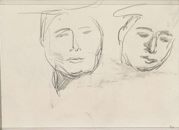 Editor: This is John Singer Sargent's "Two Female Profiles," of undetermined date. It's a delicate pencil sketch at the Harvard Art Museums. It feels so fleeting and unfinished. What do you make of its visual impact? Curator: Sargent's sketches provide valuable insight into his process. How might these quickly rendered profiles have served a purpose in his larger social milieu? Editor: Maybe they're studies for a larger portrait, or perhaps just capturing the likenesses of women in his social circle? Curator: Precisely. Sargent’s portraits served to solidify social standing. Consider how the elite used images to construct and maintain their power. What do you notice about their features? Editor: Their elegant, almost aristocratic profiles. It makes me think about the privilege of being immortalized by Sargent. Curator: Exactly. And how the art world, even then, played a part in shaping and reflecting those power dynamics. I'm glad we had this conversation. Editor: Me too. I learned so much today, thanks!