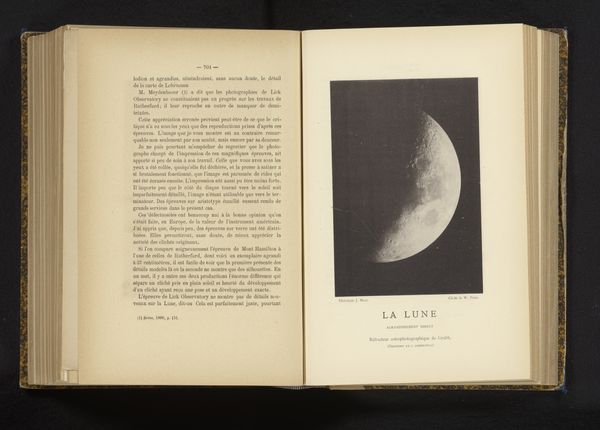 This photograph of the moon, known as Gezicht op de maan, was made by Loewy et Puiseux in Paris. It’s one of many plates within a larger atlas, a testament to the enduring human desire to document and understand our universe. What makes this image compelling is the process by which it was created. Back then, photography was a complex alchemical process. Every detail, from the texture of the lunar surface to the subtle gradations of light and shadow, speaks to the labor-intensive techniques involved. Photographers like Loewy et Puiseux had to be scientists and craftsmen, mixing chemicals, manipulating light, and meticulously printing their images. Looking at this photograph, one can appreciate the immense amount of work required to capture this seemingly simple image. It is a testament to the skilled traditions of photography, pushing the boundaries of science and art. By recognizing the amount of work that went into it, we begin to question traditional divisions between high art and craft.