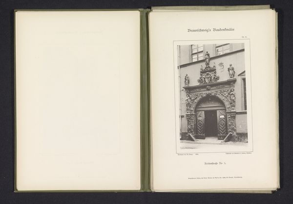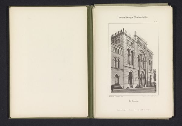 This is a monochrome print by J. Schombardt depicting the exterior of the Annakapel of the Sint-Martinuskerk in Braunschweig. The print presents a study in contrasts, where the angular severity of gothic architecture meets the soft diffusion of light. Notice how the composition emphasizes verticality. The artist uses linear perspective and tonal variation to create a visual hierarchy, drawing our eye upwards towards the chapel’s intricate roof and spire. The details of the gothic tracery around the windows and roofline are rendered with precision, and the formal repetition of pointed arches and vertical lines creates a rhythm that is both visually stimulating and structurally sound. The print functions as a cultural document, reflecting the prevailing architectural aesthetics and the social values associated with religious structures. It invites us to consider the relationship between form, function, and cultural meaning in the context of architectural representation.