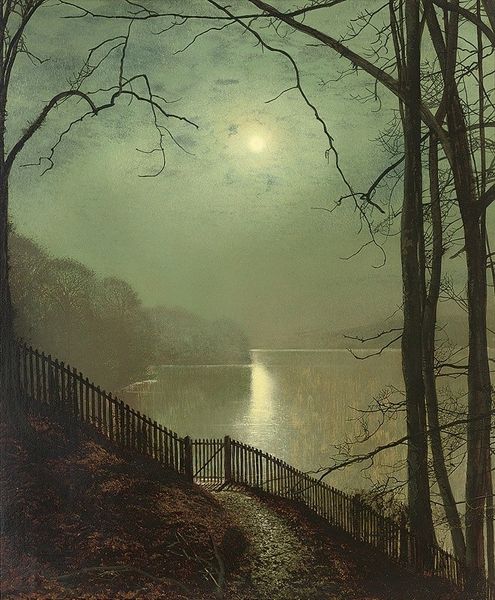 John Atkinson Grimshaw painted "Lovers on a Moonlit Lane" with oil on canvas. Here, the orb of the moon is a powerful symbol, presiding over the shadowed lane where two figures walk. The moon, an ancient emblem of mystery, transformation, and the feminine divine, casts its spectral light, evoking a sense of romance, but also of melancholy. Consider the moon’s appearance in other artworks, such as Caspar David Friedrich’s landscapes, where it often witnesses solitary figures, contemplating nature's sublime power. This symbol predates Romanticism; as an emblem it can be traced back to ancient civilizations. The moon's cyclical nature – waxing and waning – reflects the ebb and flow of human emotions and the ever-changing landscape of our inner lives. The scene is steeped in a potent symbolism, engaging our collective memories of nocturnal encounters, romantic ideals, and perhaps, the inherent human longing for connection under the silent, watchful eye of the moon.