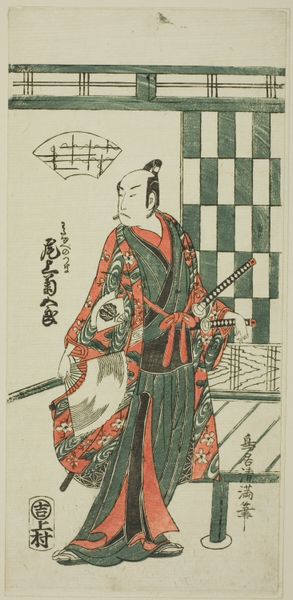 Utagawa Toyokuni I created this woodblock print, "Koraiya: Ichikawa Komazo III," portraying a Kabuki actor, amidst the vibrant theatrical culture of Edo-period Japan. Kabuki theater was immensely popular, yet actors, while celebrities, were often viewed as social outsiders. Woodblock prints like these offered a way for the wider public to connect with these figures, blurring the lines between admiration and social status. Toyokuni's work captures Ichikawa Komazo III in a moment of poised intensity, a testament to the actor's skill in embodying complex characters. The actor’s striking costume and elaborate makeup were integral to Kabuki. They served to visually communicate his role and status on stage. Kabuki was more than just entertainment; it was a space where social norms could be both reinforced and playfully subverted. This print immortalizes a fleeting performance, inviting us to reflect on the ephemeral nature of fame, the fluidity of identity, and the power of representation.