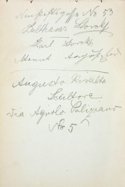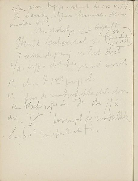 This page from a notepad was made by Reijer Stolk sometime between 1896 and 1945. It seems simple enough, a common notepad and some ink. But consider the physical qualities of the paper itself. Paper in Stolk's time was made from wood pulp through an industrialized process, a stark contrast from earlier, laborious methods that used cotton rags. It would have been relatively cheap and readily available, a material of everyday life. The marks made with ink, a fluid substance transferred onto the page with a pen, suggests a quick, almost improvisational process, a fleeting thought captured in script. The artist's gesture becomes permanent through the interaction of ink and paper. These materials carry the weight of cultural and economic histories, revealing a shift towards mass production and consumption. A simple notepad page can provide insight into the social context of its time. It reminds us that even the most humble materials can be imbued with meaning.