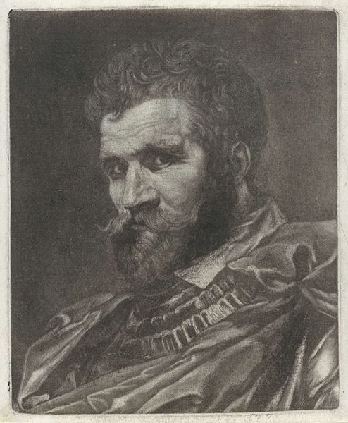 Giulio Cesare Procaccini painted this self-portrait in armor, sometime in the late 16th or early 17th century. It's a striking image from a period defined by rigid social hierarchies. Procaccini presents himself not just as an artist but as a figure of authority, perhaps attempting to elevate his status through this martial guise. The armor, a symbol of power and nobility, contrasts intriguingly with the sensitive, almost melancholic expression on his face. Is this a man ready for battle, or one weighed down by the burdens of his time? Consider the complexities of identity at play here; Procaccini was born into a family of artists, and here he seems to be actively constructing a persona that transcends the limitations of his social position. The artwork invites us to consider how individuals navigate the intersections of class, status, and personal identity. It presents a narrative that both acknowledges and subtly challenges the conventions of its time.
