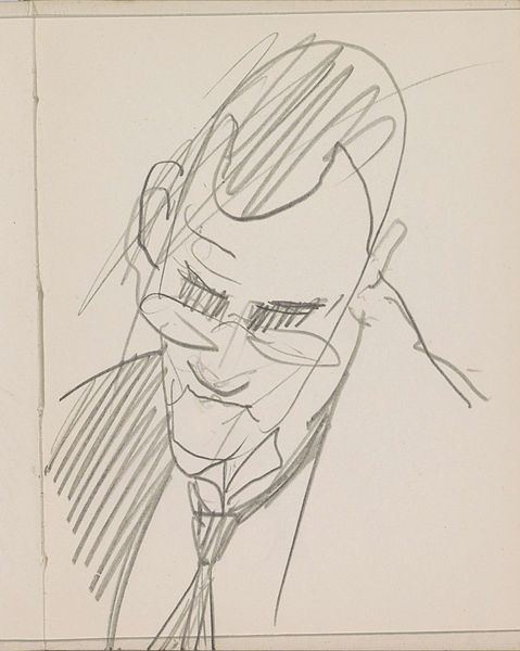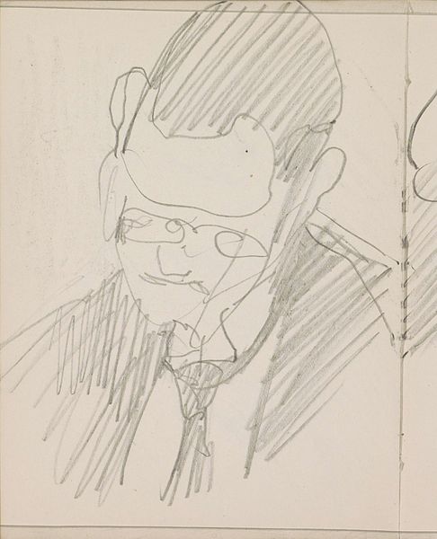 Reijer Stolk made this caricature of a man with glasses with pencil on paper. Look at these marks! The artist uses hatching and cross-hatching to build up the shadows on the man's face and clothes. It's almost like he's scribbling, but with intention, right? You can really see the process of the drawing, the way the artist is thinking through the lines. And the glasses! Aren’t they great? They are just these confident lines that suggest form without filling it in. This approach to the glasses mirrors the overall essence of the work. There is nothing laboured about this drawing. Stolk captures the essence of his subject with these loose, energetic marks. It reminds me a little bit of Philip Guston's late work. Both artists share that sense of freedom and playfulness. It's all about gesture.