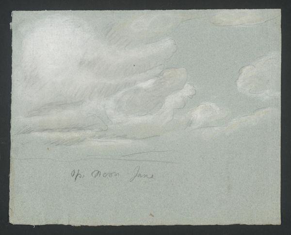 Curator: There's a distinct sense of foreboding in this sketch, a pastel work by Thomas Kerrich, dating back to the late 18th or early 19th century, now held at the Tate. Editor: The looming clouds, dominating the tiny structure below, definitely create that effect. I wonder about their symbolic weight—are they simply clouds, or something more allegorical? Curator: Clouds often represent transitions, change, even divine power in art. Perhaps Kerrich uses them to evoke the sublime, a popular concept at the time, tapping into the awe and terror of nature. Editor: I find it intriguing how such a small piece, barely larger than a postcard, can conjure such vastness. It reflects a growing interest in the natural world and its representation during that era, certainly. Curator: Exactly. Consider the period—enlightenment ideas about nature, and the artist's role in capturing its essence—all come to bear here. Editor: Seeing how art grapples with environmental anxieties, even centuries ago, gives me a fresh perspective.