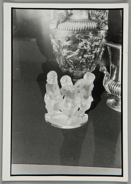 Curator: Well, hello there, gazing at this picture of what is labelled, rather straightforwardly, "Compote". Its attribution goes to Bakewell, Pears and Company and was made sometime between 1860 and 1880. Materially, we’re looking at glass. Editor: Ah, yes. The cool elegance, all frosted monochrome like a dream seen through sea glass. It feels simultaneously delicate and…powerful, in a strange way? Like Poseidon’s Tupperware. Curator: "Poseidon’s Tupperware"—I like that. The compote shape—essentially a footed dish—enjoyed enormous popularity during the mid-19th century. Remember that industrialization was changing processes, permitting the mass production of elaborate glassware. The American glass industry flourished during this period, becoming quite competitive with European makers. Bakewell, Pears and Company were based in Pittsburgh. Editor: Pittsburgh! The opposite of Poseidon's watery kingdom, isn't it? Though I imagine those factory workers thought of their foundries as similarly deep and dangerous places. Looking closer at the fish form, there’s something slightly melancholy in its glass eyes. Curator: Mass production doesn't mean simplicity; notice how the stem rises into a beautifully rendered fish, which is perched on a kind of hemispherical base, echoing classical sculpture but rendered with a fresh sensibility, as opposed to traditional methods. And on top is this almost scalloped looking bowl. Think of the artistry and craft alongside the manufacturing efficiencies! Editor: Right, all those folks involved: the designers, the mold-makers, the finishers polishing each piece. Suddenly I’m wondering about breakages, factory conditions, the hidden stories within its shimmering form… the quiet drama in the geometry and labor of it all. Curator: Exactly. This object, displayed in the Met, serves as a wonderful example, inviting us to consider the broader societal context of production. It serves both a practical and decorative function and exists beyond pure ornamentation. Editor: Looking at this picture again, its ethereal glow still whispers secrets from a long gone era. And, I'm struck by how beautifully mundane objects like this manage to hold history within them. Curator: Precisely, and isn't that interplay of artistry and industry precisely what brings the piece to life, even across centuries?