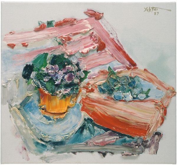 Manoucher Yektai, an Iranian-American artist, created this "Untitled" still life. He lived between two worlds, and his identity as an immigrant is central to understanding his work. Yektai’s life experiences shaped his artistic expression, living through political turmoil and cultural shifts in Iran and later the United States. In his works, the visible brushstrokes capture an emotional intensity, reflecting perhaps the artist’s own feelings of displacement. The arrangement of fruits and objects can be seen as a narrative, a story about abundance, longing, and the immigrant experience of bringing disparate elements together to create a new whole. "I want my paintings to have a life of their own," Yektai once said, emphasizing a desire for his art to transcend mere representation and evoke deep emotions. Consider how Yektai translates personal history into a universal visual language, inviting viewers to contemplate their own identities and experiences.