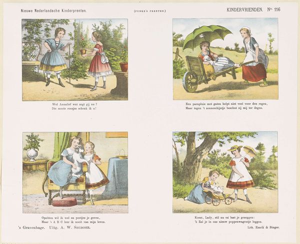 This amusing print, titled "Children's Virtues and Flaws," likely originated in the late 19th century. It presents a series of vignettes, each depicting a child embodying either a commendable trait or a regrettable vice. Consider the motif of the child diligently reading a book. This image echoes representations of scholars and saints from centuries past, symbolizing wisdom and piety. Yet, observe how its meaning shifts here, applied to a child, it reflects the values of a rising bourgeoisie and a growing emphasis on education and moral instruction. The visual language of childhood is particularly potent. Each gesture, from the studious child bent over a book to the mischievous boy scattering papers, evokes a deep, subconscious response. They tap into our collective memories of childhood, reminding us of the innocence, vulnerability, and the inherent potential for both good and ill that resides within each young soul. This enduring iconography demonstrates how the images of childhood, while rooted in a specific time and place, continue to resonate across generations.