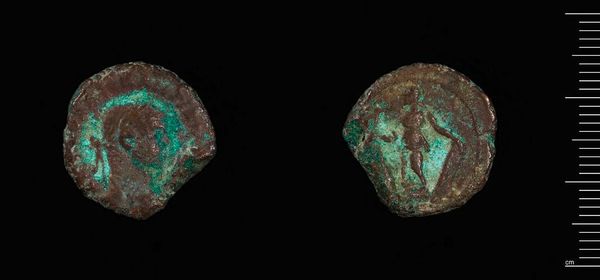 Editor: This is the Aspron Trachy Nomisma of Theodore I. I'm struck by the weight of it, just 2.29 grams, and its weathered materiality. What stands out to you? Curator: The most compelling aspect is the interplay between the incised figuration and the degradation of the metal itself. Notice how the patination acts as a visual counterpoint to the relief. Editor: So, the decomposition becomes part of the composition? Curator: Precisely. The randomness of the decay introduces an element of chance, disrupting any intended symmetry. It highlights the tension between artistic intention and material fate. Editor: I never thought about it that way. Curator: Considering such juxtapositions allows us to understand the piece's layered aesthetic. Editor: I'll definitely look at similar works through that lens now.
