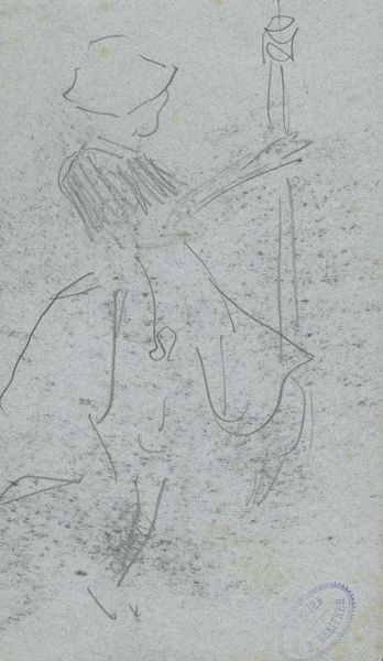 Curator: George Hendrik Breitner's "Wandelende vrouw," dating back to around 1882, presents a glimpse into his sketchbook. It’s currently held here at the Rijksmuseum. It's rendered in pencil on paper. Editor: Oh, the paper looks almost flimsy, doesn't it? Like a butterfly net trying to catch a thunderstorm. I feel like these aren't finished drawings, just fleeting impressions barely tethered to the page. Curator: Precisely. Breitner was a master of capturing movement and atmosphere. Notice the repetition of the figure; it's like watching her walk across the frame. It also indicates his commitment to realism over idealism, revealing his modern approach to Dutch art, focused on ordinary, working class subjects. Editor: She almost fades away; I find the effect to be terribly poignant. The rapid strokes feel very private, an intimacy, yet she could be anyone from the street. What statement was Breitner trying to convey by using this specific artistic technique? Curator: Well, think about the burgeoning urban environments of the late 19th century, the constant flux of people and commodities. Breitner sought to capture that energy, documenting the modern experience, yet simultaneously exploring what makes it difficult to pinpoint, freeze and capture an emotion or an atmosphere. It mirrored broader societal shifts too, as art institutions navigated the tensions between tradition and innovation. Editor: So, less about precise detail and more about... essence? Like a photographer using a shallow depth of field? Curator: Absolutely. It mirrors the contemporary movement toward fleeting moments, impressionism in other words, and a deep consideration of the modern pace of city life. His drawing is not about capturing this individual woman's identity but representing urban life in the city of Amsterdam more generally. Editor: Well, whatever it is, I find this "Wandelende vrouw" oddly affecting, its ephemeral beauty and rough simplicity speaking volumes about its subject. There's something very touching about catching someone at a transitonal phase; it speaks of both temporality, beauty, and movement all together. Curator: Yes, a compelling example of how historical shifts impact artists personally.