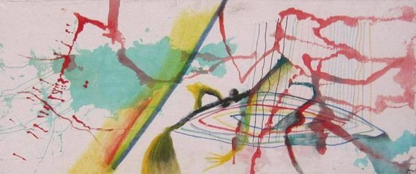 Roberto Matta made this drawing, Morphology, on paper using coloured pencils. Look at the way the lines build up, creating these wild, almost science-fictional forms. You can see how he's working, his hand moving across the surface, making marks that accumulate into something bigger. The texture is crucial here, the way the colored pencils create a soft, almost fuzzy surface, contrasting with the sharp, surreal imagery. Notice how the colors bleed into each other, creating a sense of depth and movement. See that spiky, orb-like shape in the middle? The way it pulses with different greens and yellows, it feels like a cell under a microscope, or maybe something from another planet. Matta's work often explores these inner landscapes, blending the scientific with the surreal, like other surrealists such as Yves Tanguy. His art reminds us that the world is full of endless possibilities and interpretations, and that’s what makes it so exciting.