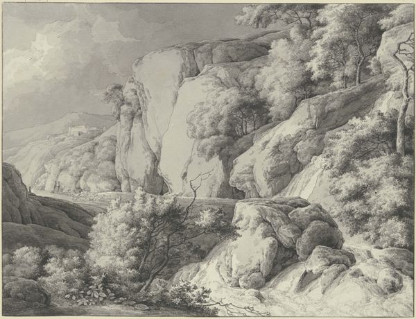 Editor: Here we have Emanuel Larsen’s "Geiser på Island," an engraving from 1849. It’s all in monochrome, with a really impressive plume of water dominating the scene. I’m struck by how the small figures are dwarfed by this force of nature. What captures your attention in this work? Curator: The magic for me lies in how Larsen captured the sublime. Back then, Iceland was on the edge of the known world. Think about the cultural fascination with these wild, untouched places in the 19th century! You've got that stark contrast between the delicate lines of the engraving and the raw, explosive power it portrays. Do you see how the lines almost vibrate with the energy of the geyser? It’s not just a pretty picture; it's about the awe and terror inspired by nature. Editor: That makes me think about the composition and the placement of the geyser; it's like the world is exploding. The almost clinical detail against the grand, volatile event feels strangely compelling. Curator: Exactly! And the print medium itself, allowing for mass production, democratized this experience of the sublime. People who couldn't travel to Iceland could still possess a piece of its raw energy. What a clever trick, eh? Editor: So, it's not just about the scene but about making the spectacle accessible? I never really considered that. Curator: Precisely! Art often smuggles in concepts under the guise of beauty or representation. Larsen is selling you both Iceland AND the idea of Iceland. A subtle but crucial difference, wouldn't you agree? Editor: I suppose you're right; my initial perspective missed that historical depth entirely. Curator: And that, my dear Editor, is what makes art so endlessly fascinating!