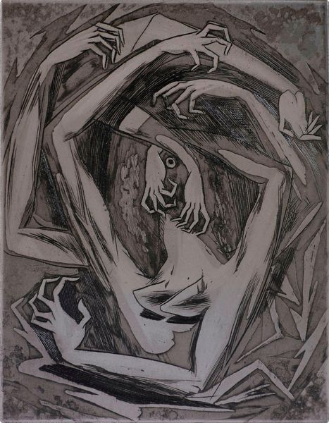 Editor: Here we have Ceri Richards' "The Story Lost in the Snow," date unknown. It's got this striking combination of delicate line work and bold color fields that gives it a dreamlike, almost unsettling quality. What do you see in this piece? Curator: Well, I notice how Richards uses lithography to flatten the figures, emphasizing the process of printmaking itself. The seemingly simple lines belie the labor involved in their creation, especially considering Richards' socialist leanings. Where does the 'story' reside, if not in the materiality itself? Editor: So, you're focusing on the physical act of making the print to understand its meaning? Curator: Precisely. The tension between the 'high art' subject matter and the 'low art' printing process is key. What do you make of the color choices? Editor: It makes me think about how the choice to flatten figures could make viewers question the story presented. Curator: Yes! Thinking about the medium makes a difference!
