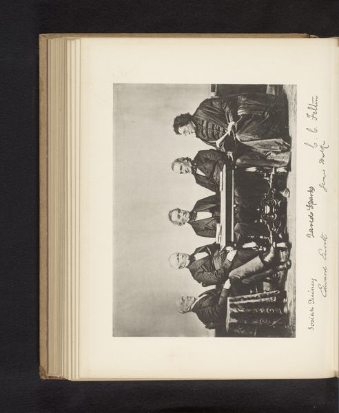 Curator: Here we have an intriguing gelatin silver print titled "Matrozen met een accordeon," or "Sailors with an Accordion," made sometime between 1940 and 1943. Editor: Instantly, there's a sense of jovial camaraderie that radiates from the photo, a shared moment amongst the sailors—the one holding an accordion adding to that mood. Curator: Note the compositional elements; the artist, whose name has been lost, chose a dynamic grouping of figures. Consider, too, how the light catches on their white uniforms. The diagonal lines formed by the machinery behind them cut across their softness. Editor: Absolutely, the machinery gives context of a ship and the diagonal creates a tension that makes this feel less posed than you'd expect for the time. Plus, someone has a smoke. All these small visual choices really enhance this feeling of easy intimacy and spontaneity. You know, sometimes it feels like photos speak to something innate in the human condition: our connections with each other. Curator: One might interpret their expressions as evidence of an intersubjective bond, a collective awareness achieved through the shared experience of seafaring during wartime. Semiotically speaking, these young sailors, caught in a modern photograph, simultaneously connote themes of brotherhood, national identity, and ephemeral beauty. Editor: Perhaps. I get something more from the easy grouping: that time spent when you realize people are going to matter, become deeply woven into the fabric of your being—your found family, your friends on this crazy rock. The photo radiates something like that. Curator: It's in moments like these that formal constraints can highlight emotional intensity; I'd suggest our reaction proves the impact of visual representation, no matter our personal associations. Editor: Indeed. What begins as an analysis becomes a conduit, transporting us beyond the art to a realm where we remember and cherish human connection.