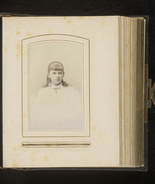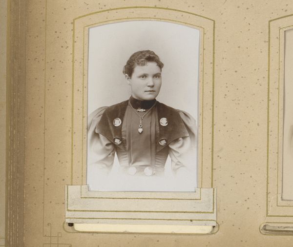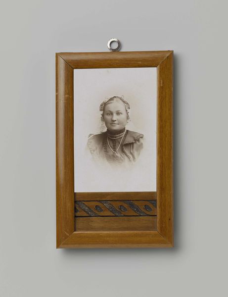 This is an undated portrait of Princess Emma, housed in a decorative frame, at the Rijksmuseum. The portrait is a study in contrasts and visual hierarchy. The artist directs our eye through the interplay of light and shadow, sharply defining Princess Emma's features against a muted backdrop. Notice how the graphic quality, with its reliance on line and hatching, flattens the pictorial space, emphasizing surface over depth. The gaze of the sitter is a key element here, which draws us into the composition. The frame around the photograph introduces another layer of meaning. The birds in the upper left and the feather in the lower right, might initially appear to be decorative elements. But they propose questions about aspiration, freedom, and the symbolic weight of ornamentation in representing status. Ultimately, this work functions as more than just a historical record; it is an intricate construction of signs and signifiers that prompt us to consider the codes of representation and the silent narratives embedded within portraiture.