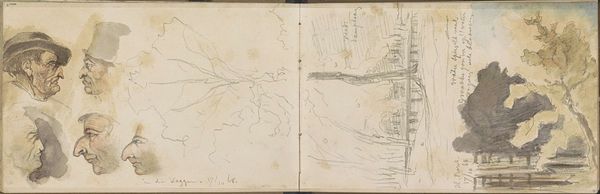 Editor: Here we have Willem Cornelis Rip’s "Gezicht op Kleef," likely from between 1896 and 1898. It’s a landscape drawing, using pencil. The lines are so delicate; it reminds me of catching a fleeting memory. What captures your attention most in this piece? Curator: Oh, I adore its intimacy! To me, it’s a visual whisper, like stumbling upon Rip's personal sketchbook and catching him in a private moment of observation. There's a beautiful honesty in these loose, almost ethereal lines, isn't there? Does it strike you as complete or more of a study? Editor: That's a great question! I see it more as a study, because of the facing blank page. Curator: Yes! It's tempting to think, isn't it, about what he intended to do with that facing page? A further development of the scene? A different angle? It almost becomes a collaboration between the artist and us, the viewers. The town itself seems barely there, more suggestion than statement. The ephemeral touch! You almost feel the breeze. Do you feel you can "see" it or "sense" it? Editor: Sense it, definitely! I feel like I’m there, experiencing the same gentle scene that he captured. It really sparks the imagination! I can almost imagine a little village hidden somewhere! Curator: Precisely! It feels like Rip wasn't trying to capture the *thing* itself but rather its echo on his soul, which somehow also transmits to ours. I feel a desire to fill it with all I lack! I thank you for your youthful look! Editor: Wow, I never thought about it that way before, but you’re right – it is almost like he wanted us to complete it. So, it’s both his and ours simultaneously. Thanks!