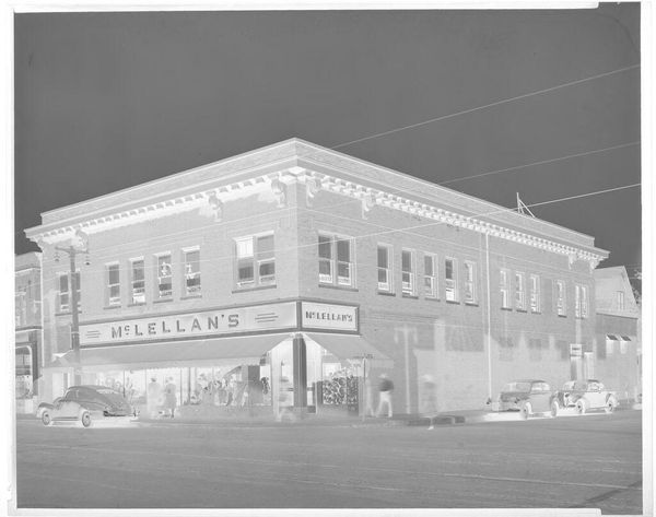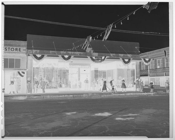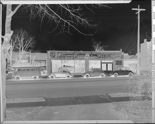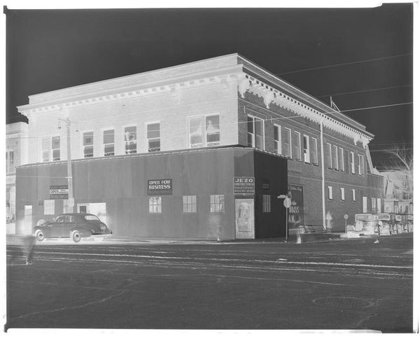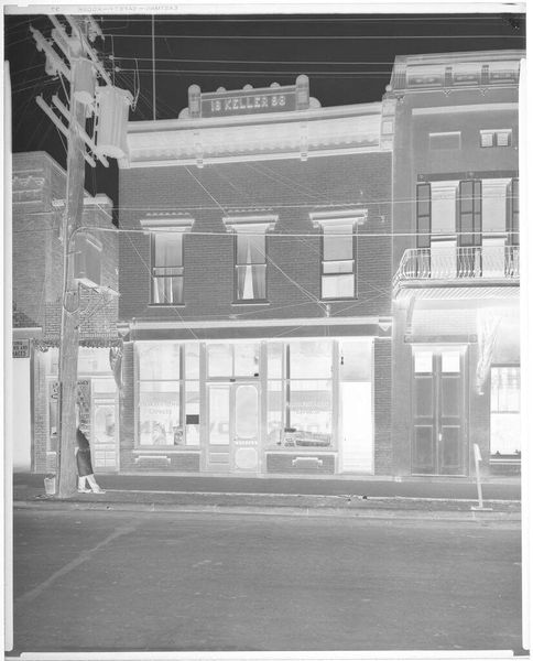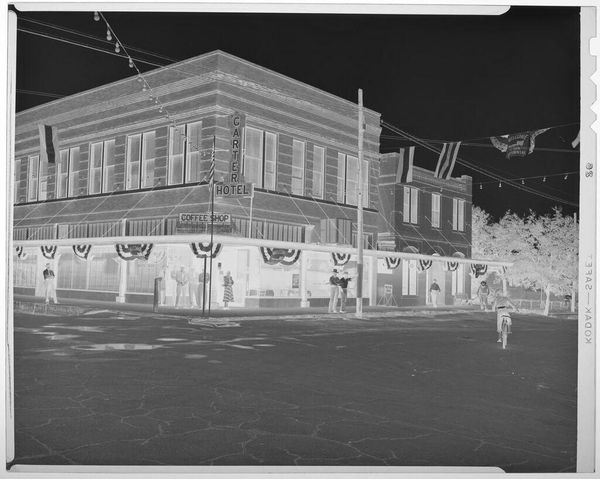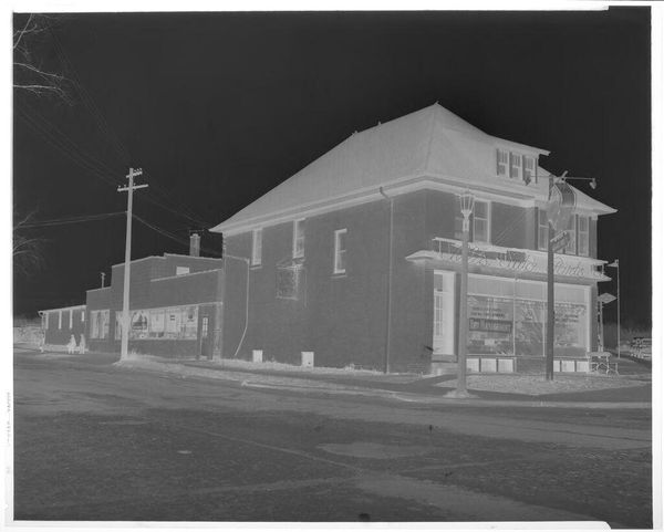 Curator: This rather unassuming image, held in the Harvard Art Museums, captures the exterior of the Lockhart Savings & Loan Association, taken by Harry Annas. Editor: It feels like a ghost town, doesn't it? All these shadows and that stark geometry create this feeling of emptiness, like a memory fading. Curator: The absence of people is striking, isn't it? It invites us to consider the role of these institutions within the social fabric of the time, and question who had access to them. Editor: Absolutely. It's a very quiet photo, yet it speaks volumes about a certain type of American town. Curator: It's a reminder that what we see is always framed by what's absent, what’s implied by omission. Editor: I suppose what I love about this is that it feels so much bigger than just a building.