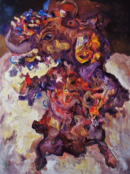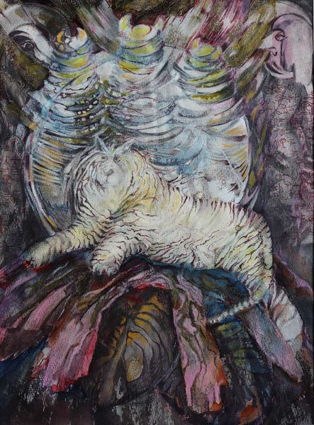 Curator: We’re looking at Małgorzata Serwatka's "Pale Roses," an intriguing oil painting. What's your immediate reaction to this work? Editor: A quiet melancholy. The muted colors, the blurred edges... it evokes a sense of fading beauty, perhaps a reflection on time's passage. The forms, while representational, feel abstracted. Curator: The painting exemplifies the artist's engagement with impasto techniques. We can really see the texture of the medium, especially when looking closely at the rose petals. This style invites dialogue concerning labor within artmaking. The gestures visible in the paint application draw attention to the performative act behind it. Editor: Precisely. The composition seems almost chaotic, but that layered paint creates an intricate structural web that, while obfuscating the representation somewhat, really gives it a presence. Look at the way light reflects off the higher points of impasto! The visible brushstrokes almost create movement within the stillness. Curator: Considering it’s painted with oil on canvas, an immediate reading points us to class dynamics. Access to artist-grade materials, exhibition venues, or the means of living are far from equally available across socio-economic realities, even though we can identify clear connections between the material handling on view and expressions of universal concepts such as beauty or loss, and decay. Editor: Indeed. Though the forms are traditionally beautiful – the roses, the pastel colors – they are rendered with an almost unsettling haziness. It pushes against straightforward representational readings. I detect some similarities with Fauvist paintings. Look how the structure favors feeling over pure observation. Curator: And the availability of oil paint from tube impacted painters' ability to work more freely as well. Understanding such nuances of artistic expression and production opens a wider and more meaningful engagement. Editor: Yes, focusing on how these roses are depicted can lead us to a lot of exciting discussions around emotional response. Curator: Exactly! With just one glance, analyzing "Pale Roses" offers an intense dialogue between art as labor and feeling. Editor: An approach which can challenge many well-cemented assumptions around artistry and labor. Thank you.